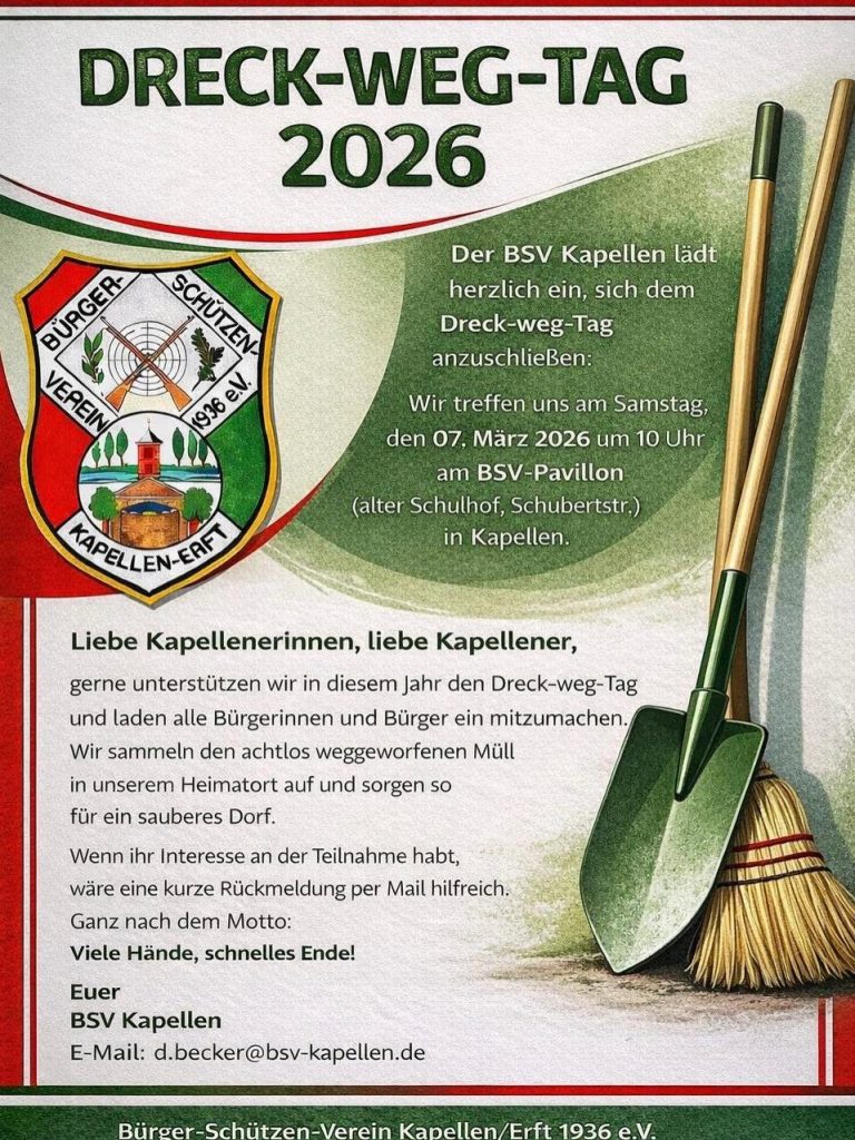 Zunächst einmal wünschen wir euch allen noch ein frohes neues Jahr und freuen uns schon jetzt auf die gemeinsame Zeit, die wir in 2026 bei den zahlreichen Veranstaltungen in Kapellen und Umgebung zusammen verbringen werden!